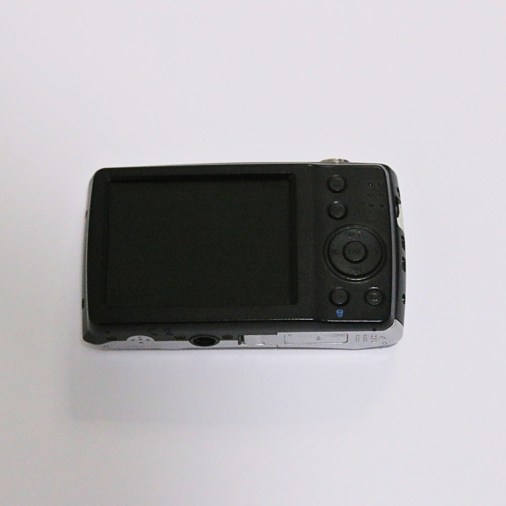 Una cámara compacta digital clásica del año 2010 capaz de capturar tanto fotografías como vídeos. Con flash incorporado, pantalla LCD y varios modos de disparo.