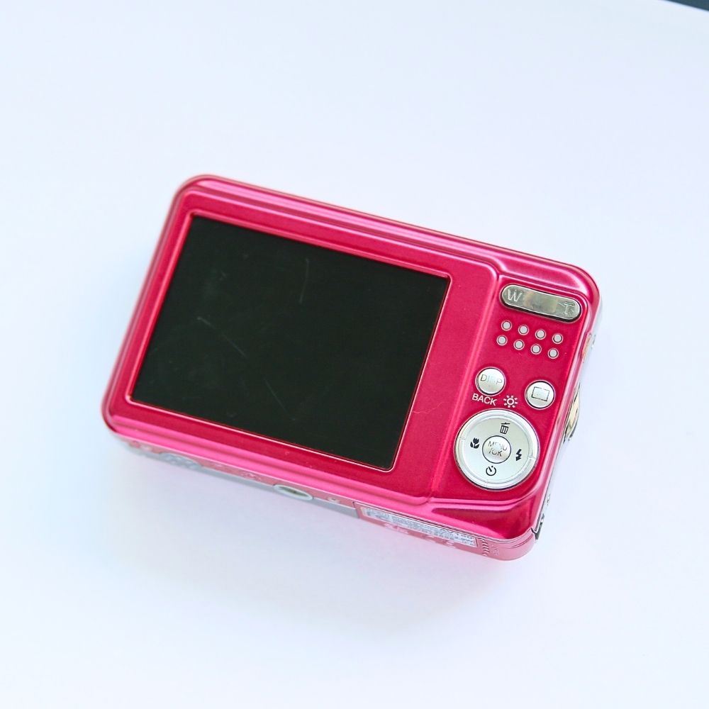 Una cámara compacta digital clásica del año 2010 capaz de capturar tanto fotografías como vídeos. Con flash incorporado, pantalla LCD y varios modos de disparo.