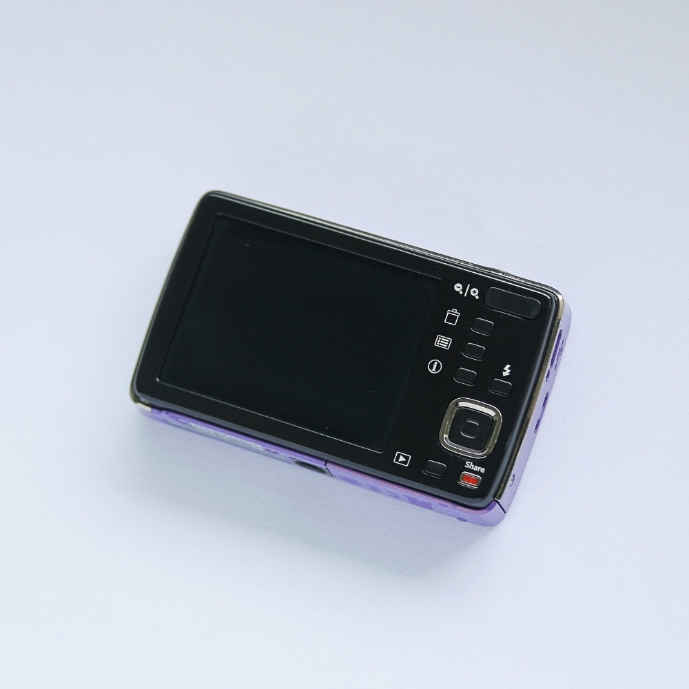 Una cámara compacta digital clásica del año 2010 capaz de capturar tanto fotografías como vídeos. Con flash incorporado, pantalla LCD y varios modos de disparo.