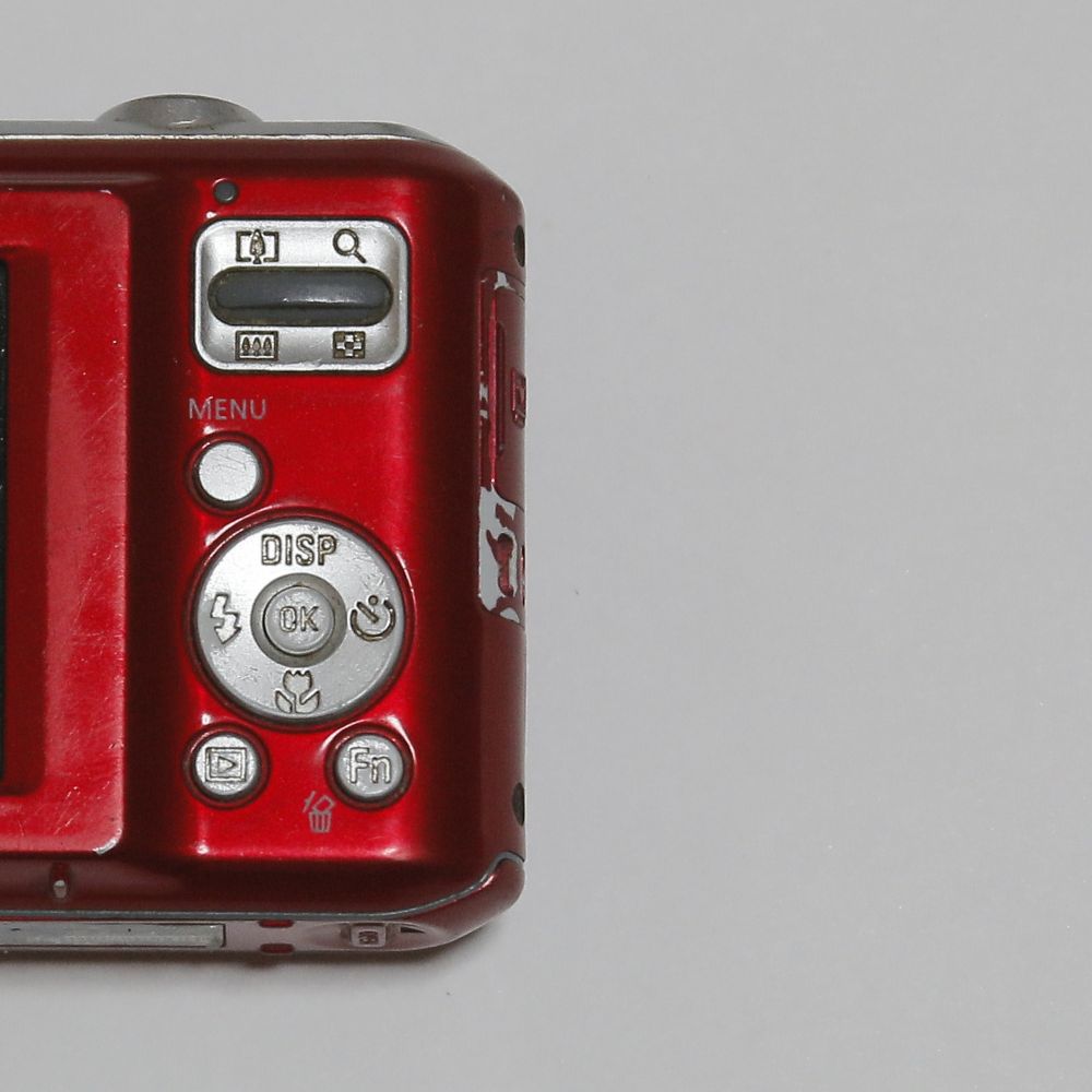 Una cámara compacta digital clásica del año 2010 capaz de capturar tanto fotografías como vídeos. Con flash incorporado, pantalla LCD y varios modos de disparo.