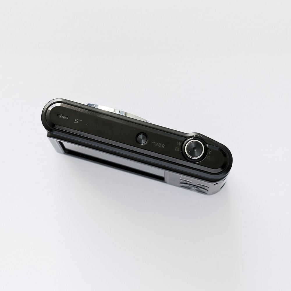 Una cámara compacta digital clásica del año 2013 capaz de capturar tanto fotografías como vídeos. Con flash incorporado, pantalla LCD y varios modos de disparo.