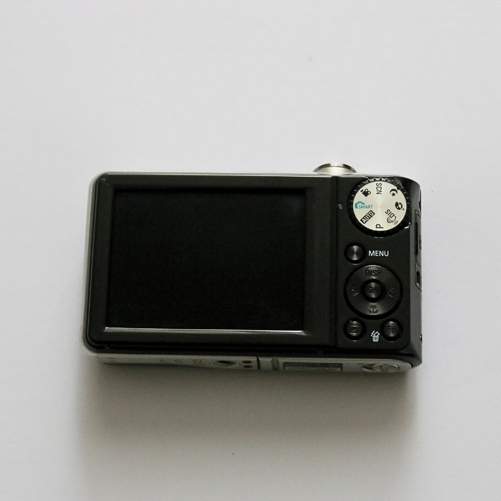 Una cámara compacta digital clásica del año 2010 capaz de capturar tanto fotografías como vídeos. Con flash incorporado, pantalla LCD y varios modos de disparo.