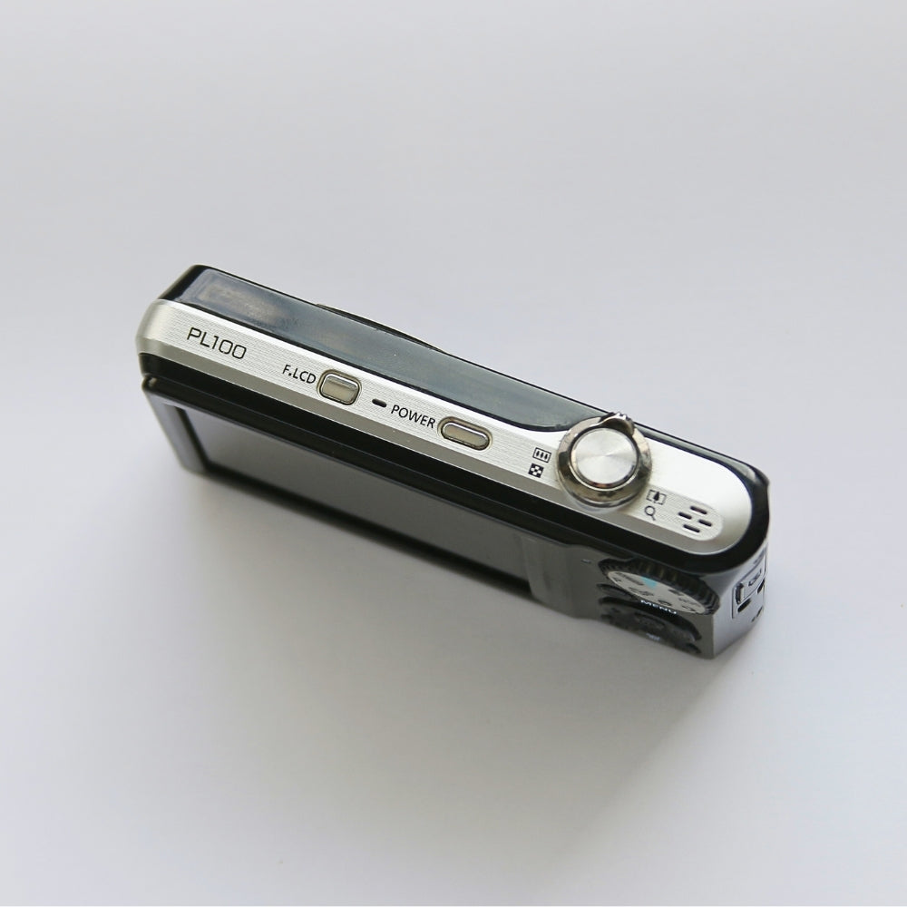 Una cámara compacta digital clásica del año 2010 capaz de capturar tanto fotografías como vídeos. Con flash incorporado, pantalla LCD y varios modos de disparo.