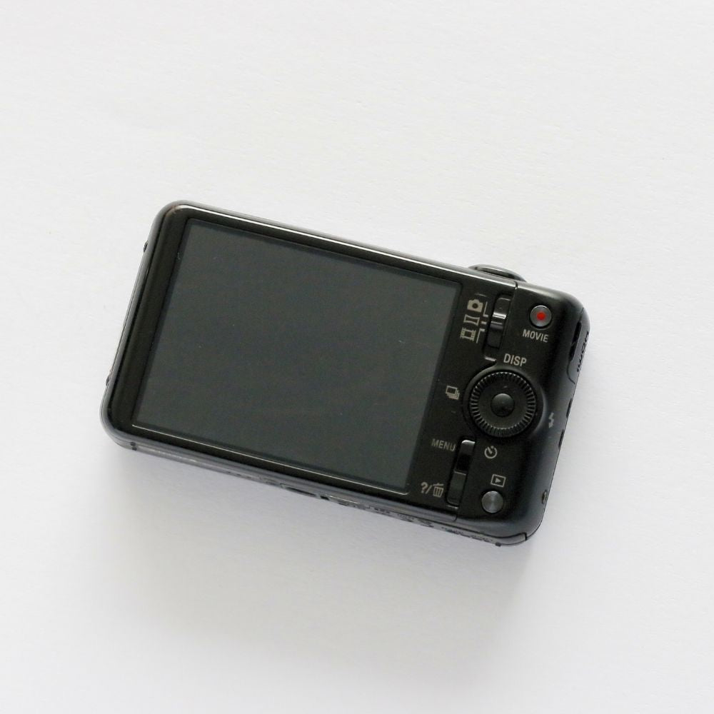 Una cámara compacta digital clásica del año 2012 capaz de capturar tanto fotografías como vídeos. Con flash incorporado, pantalla LCD y varios modos de disparo.